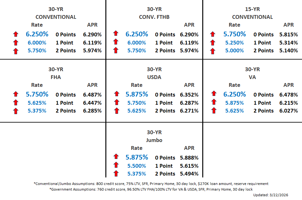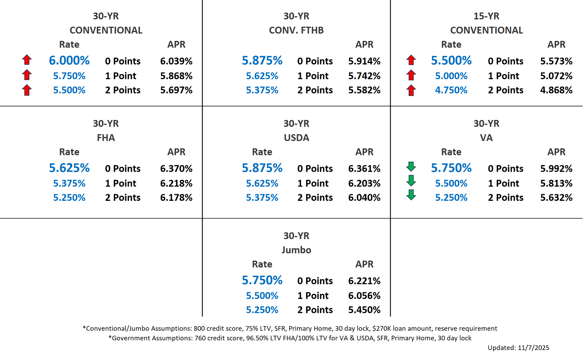 Disclaimer: Rates shown are for informational purposes only and reflect market conditions as of the date indicated. Rates may change without notice and vary based on credit profile, loan amount, property type, and other factors. This is not a commitment to lend or a guarantee of any rate or terms.