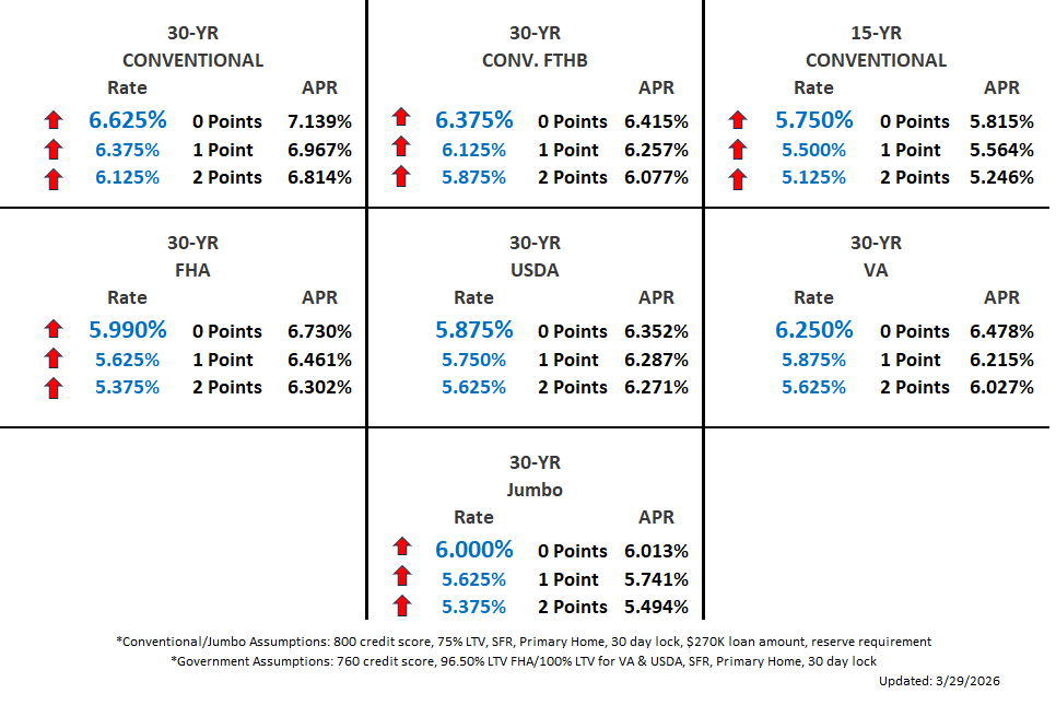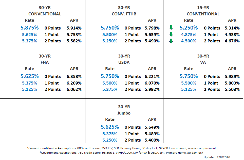 Disclaimer: Rates shown are for informational purposes only and reflect market conditions as of the date indicated. Rates may change without notice and vary based on credit profile, loan amount, property type, and other factors. This is not a commitment to lend or a guarantee of any rate or terms.